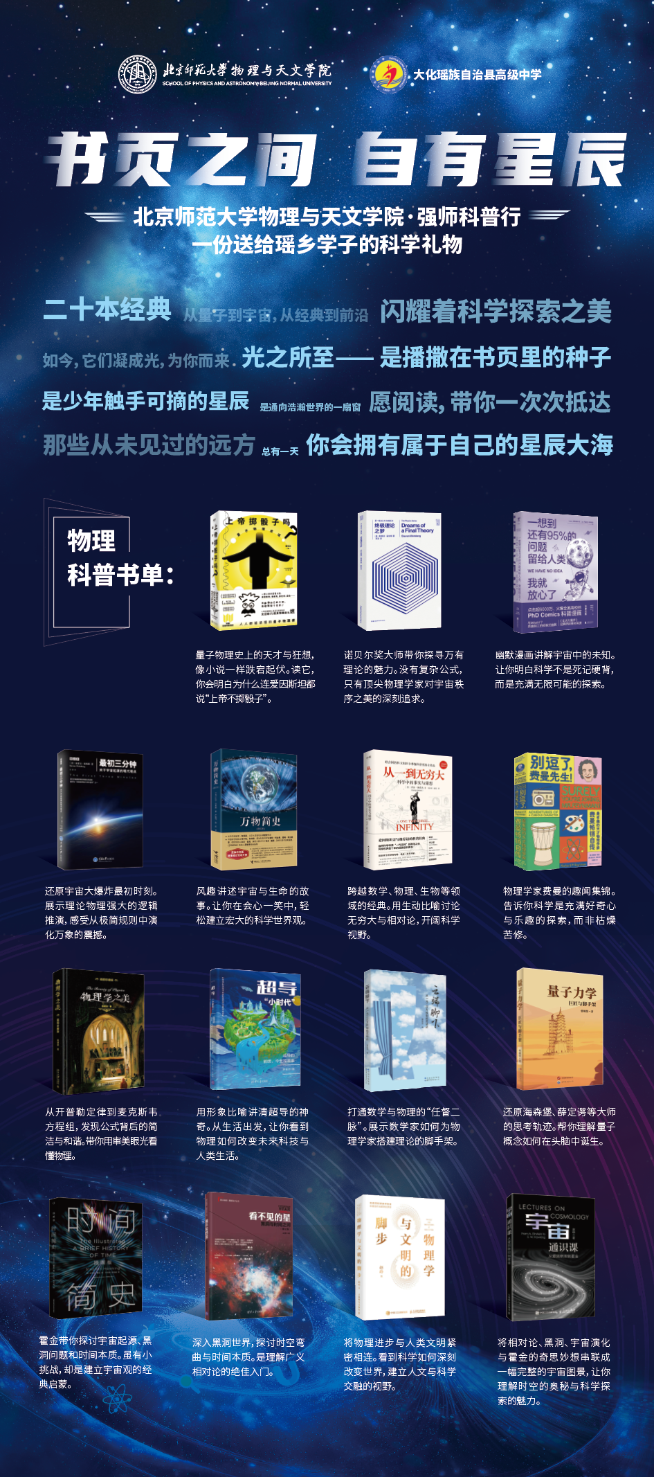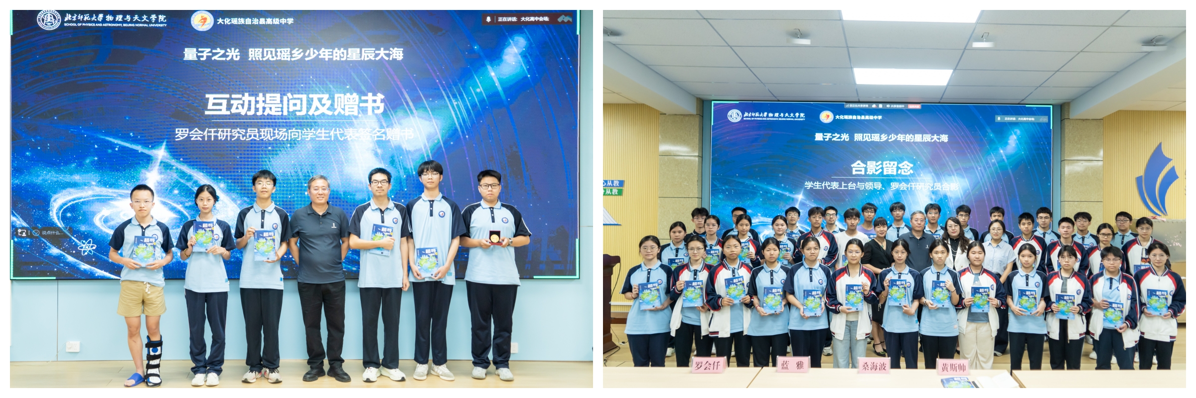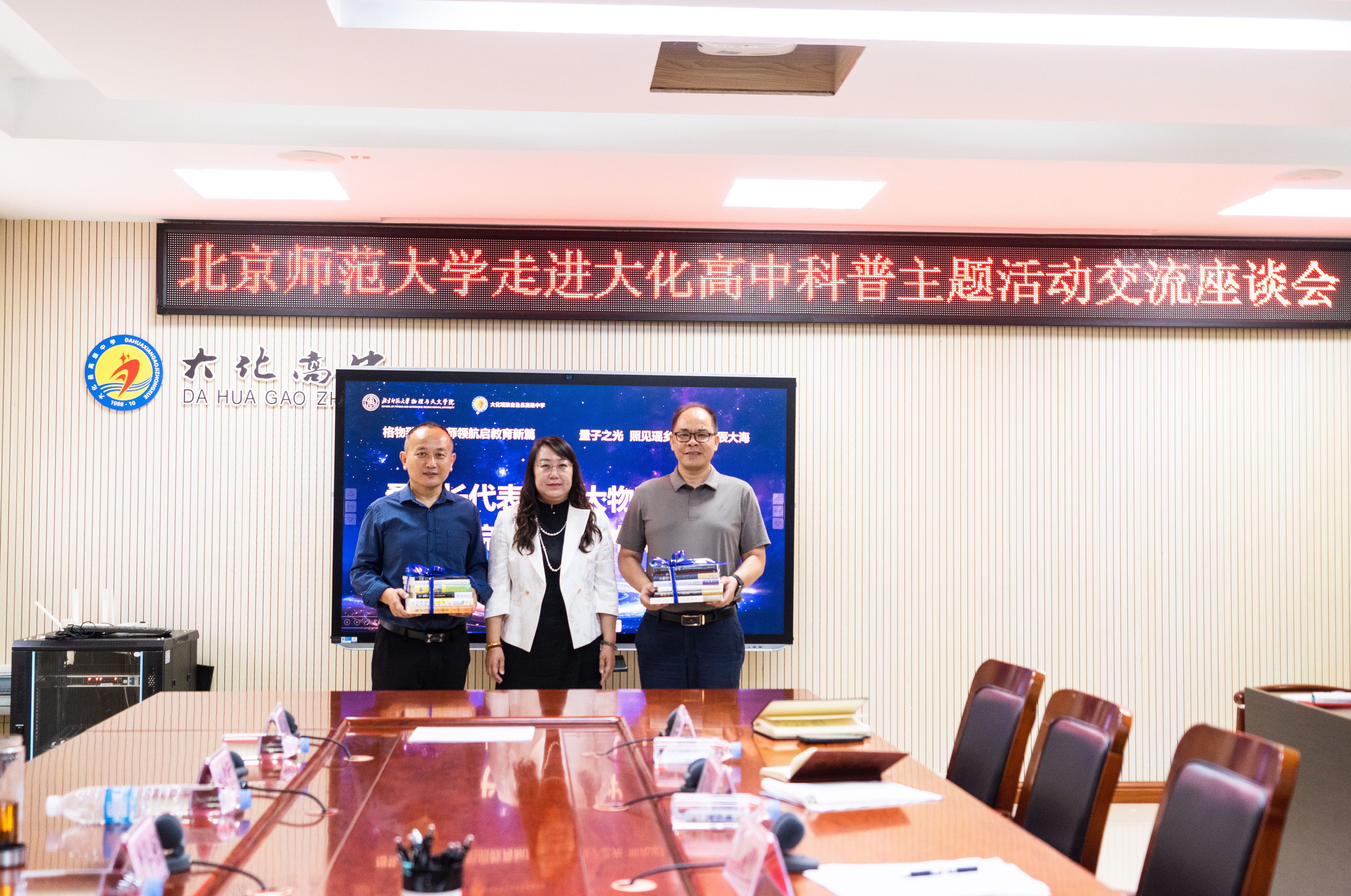 赠书仪式上,桑海波代表北师大物理与天文学院向大化高中赠送了一批物理科普书籍。