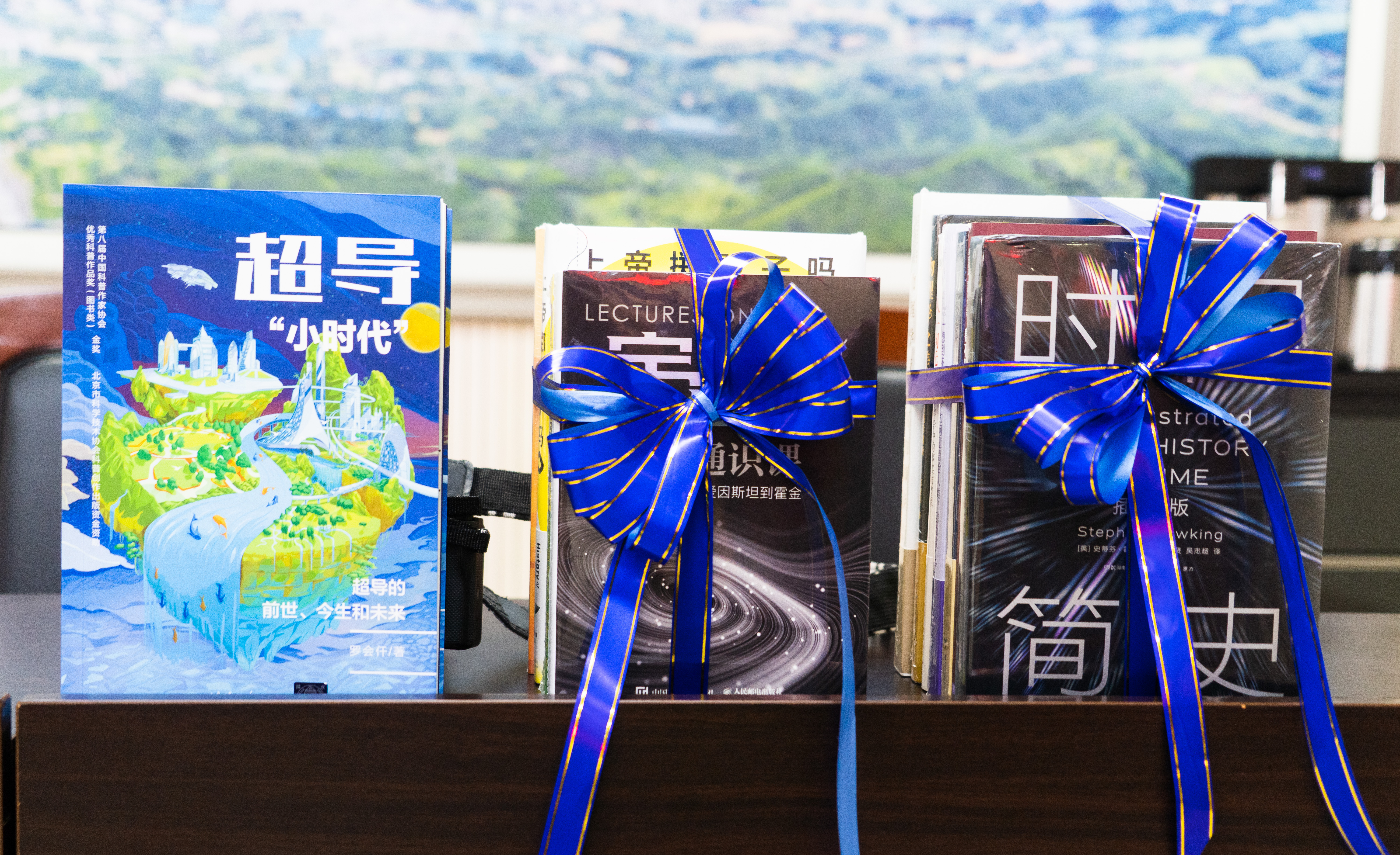 讲座尾声,罗会仟向大化高中36个班级的学生代表赠送了他亲笔签名的科普著作《超导小时代》。